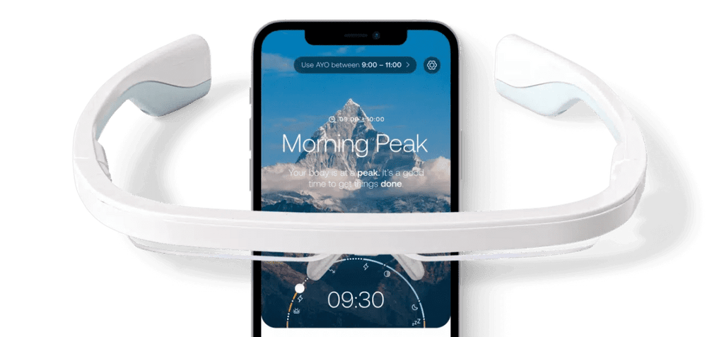 AYO makes initiating light therapy easy as the AYO companion app uses proprietary algorithms to analyse the user’s circadian health, offering stage-specific advice throughout the day regarding light exposure, food, caffeine, mental alertness, exercise and sleep.
