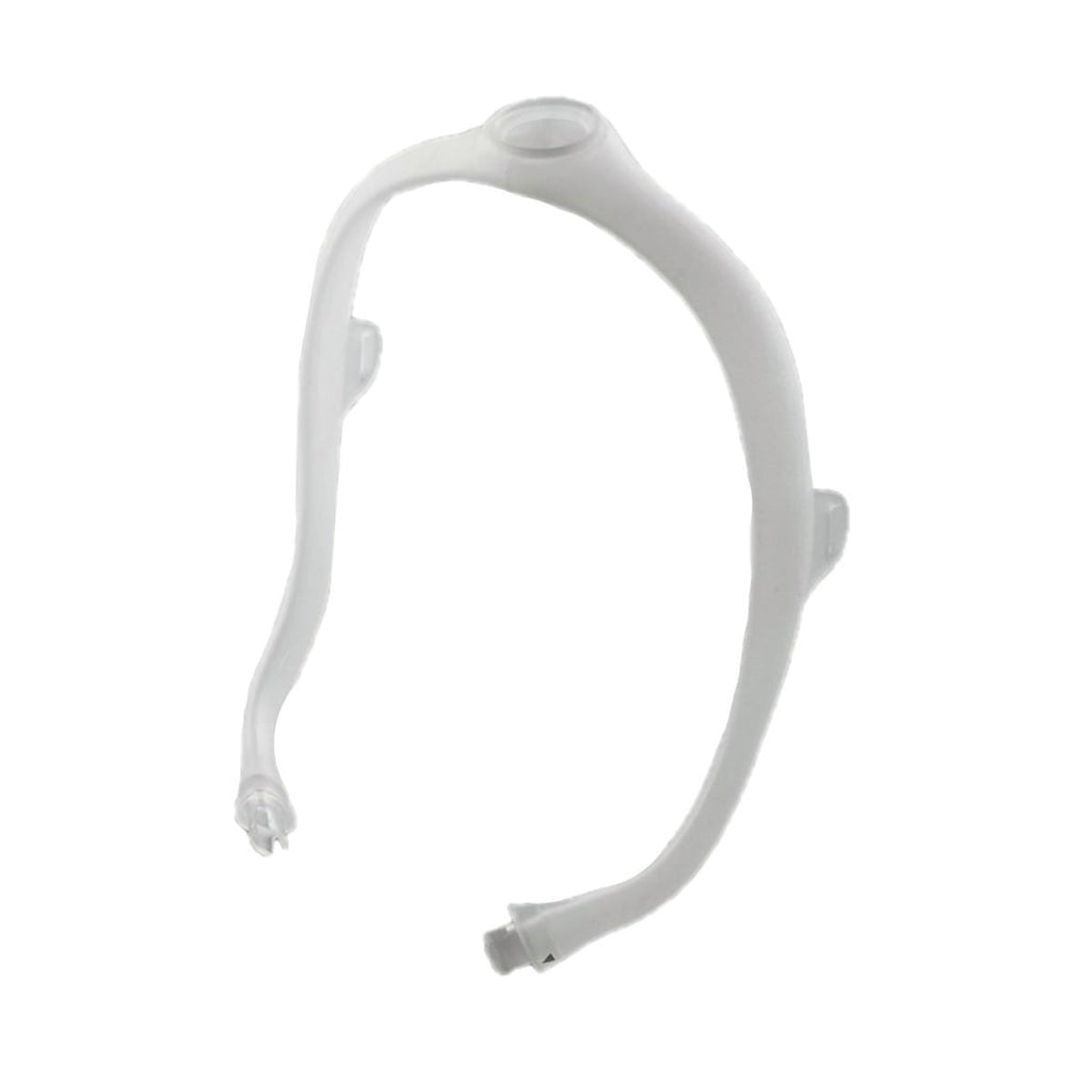 The Dreamwear frame is designed with the elbow at the crown of the head, allowing the hose to be routed above the user for optimal comfort. This design will help alleviate tug on the front of the mask enabling a more stable seal during the night. The elbow is free to swivel inside the connection to help active sleepers maintain proper placement of the mask as sleeping positions change.
