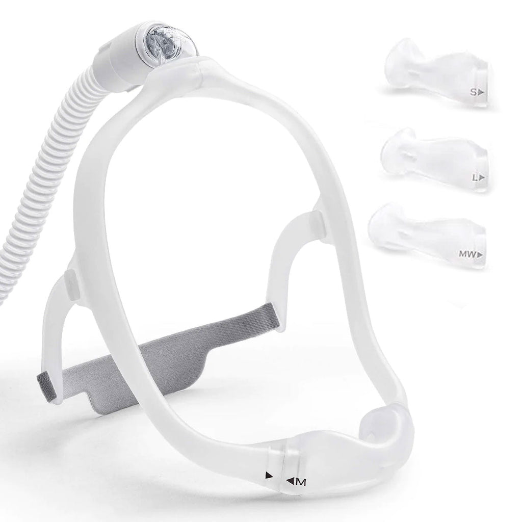 The DreamWear Nasal CPAP Mask with Headgear is a revolutionary break-through, an Under the Nose Nasal Cushion with a Soft frame which airflow passes through. The FitPack includes Medium Frame with 4 cushion sizes.