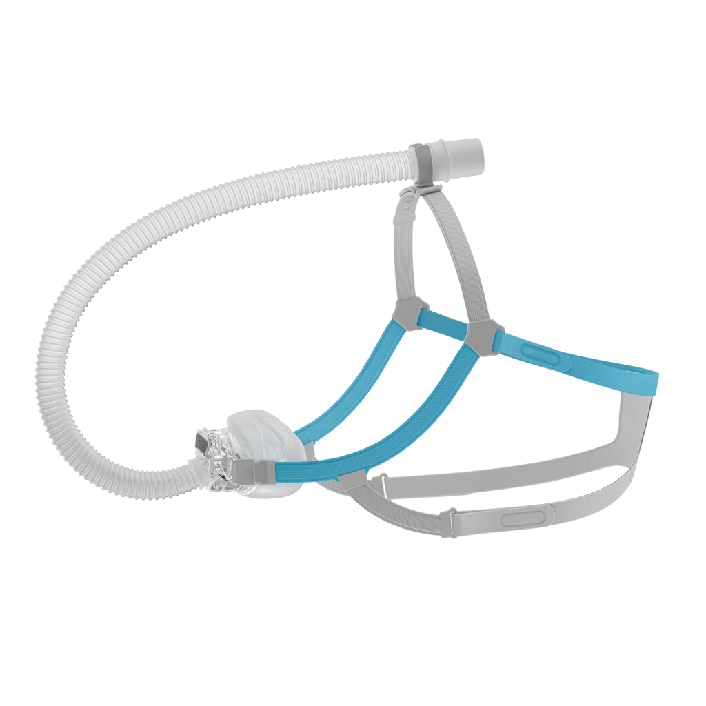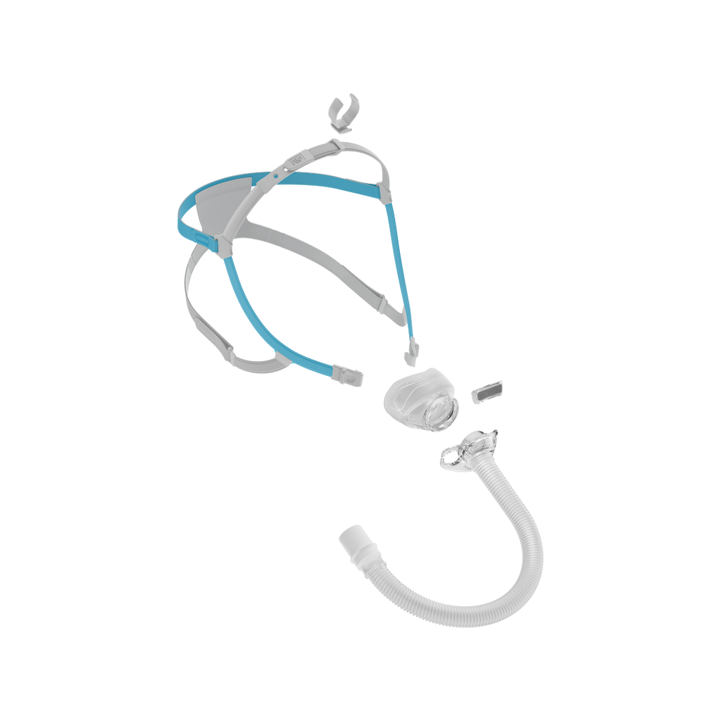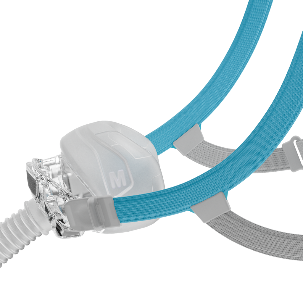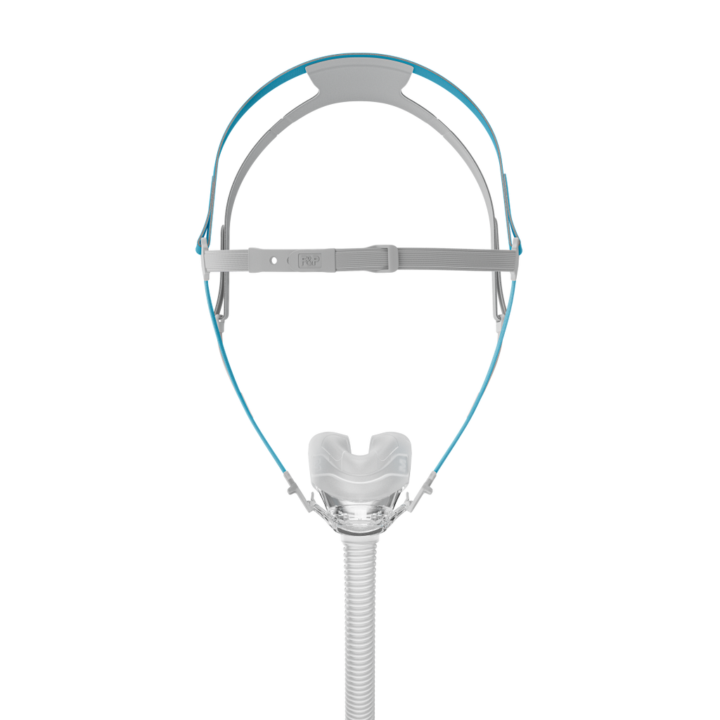 - F&P Nova™ Nasal with SwingFit™ headgear: Simply place the cushion on your nose, swing the headgear around your head, and secure with one click.