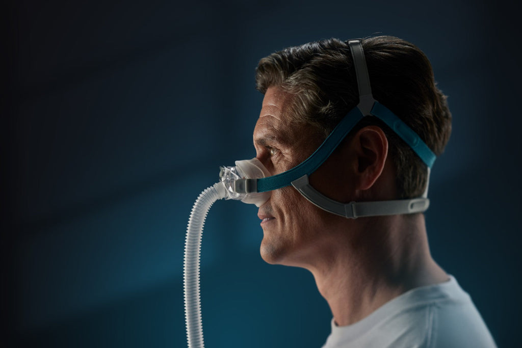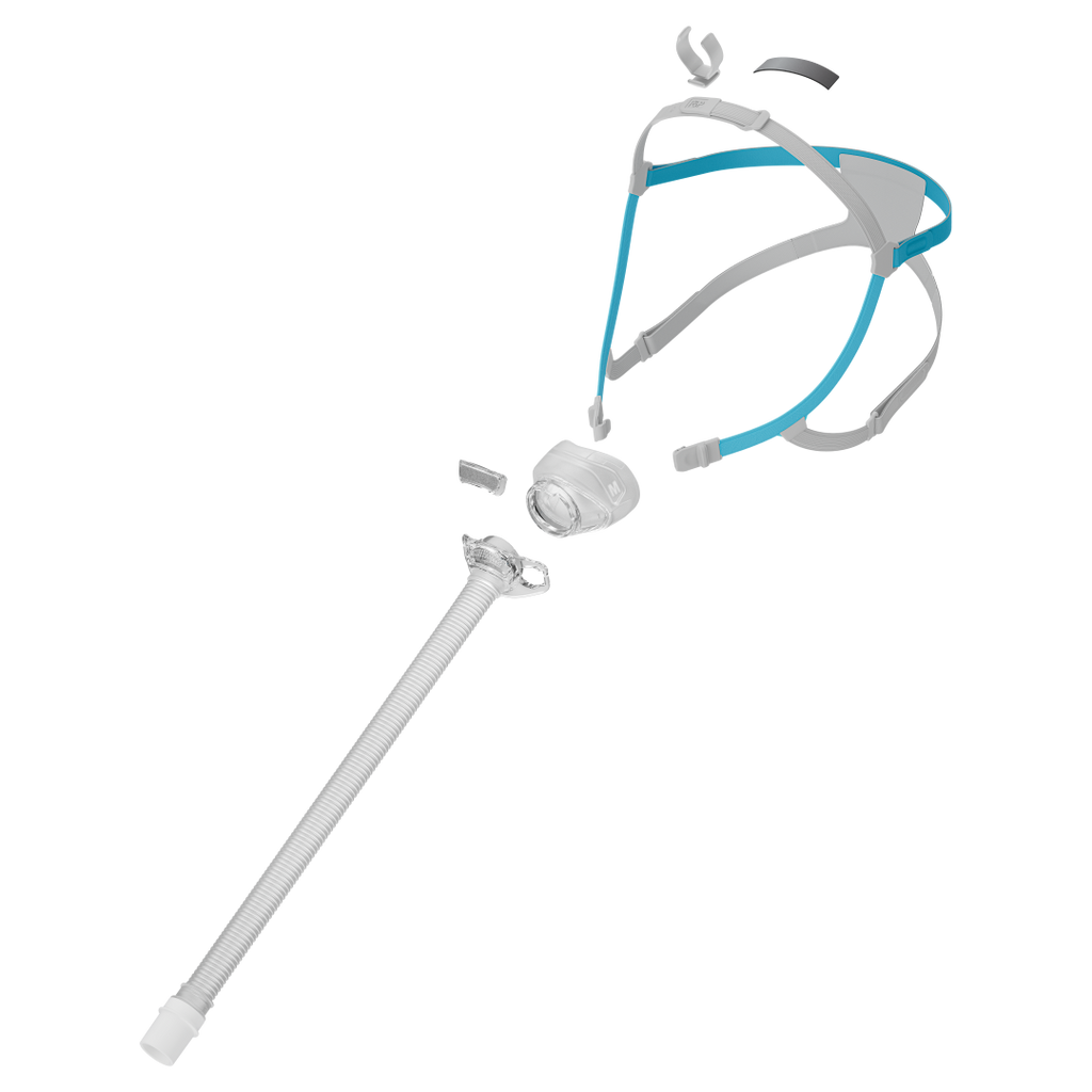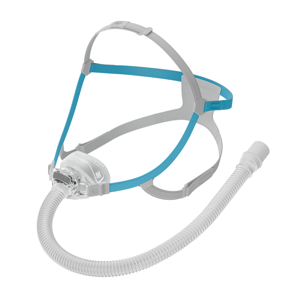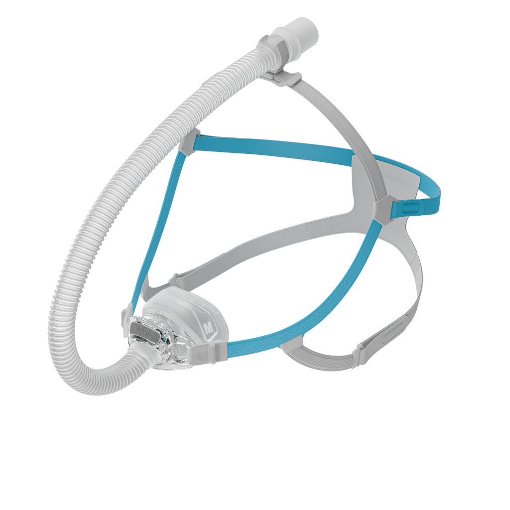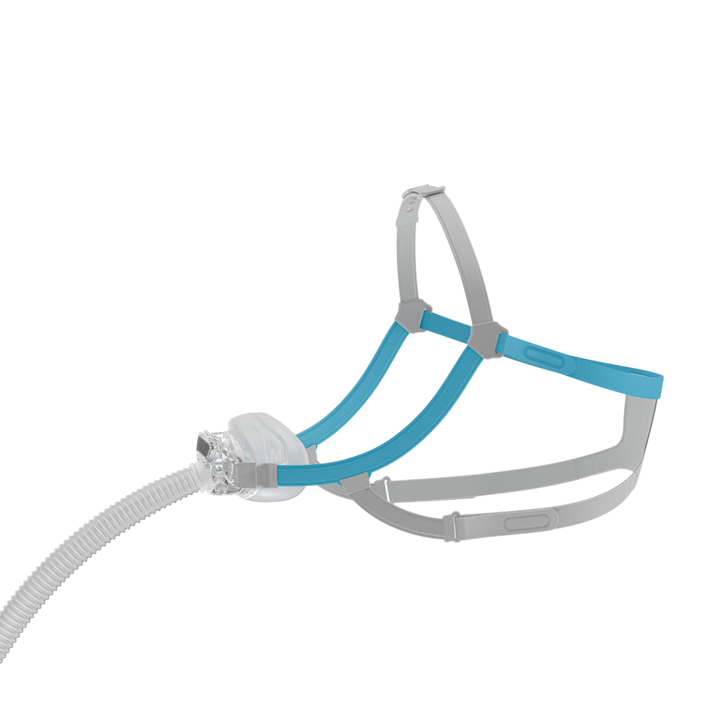 - F&P Nova™ Nasal with SwingFit™ headgear: Simply place the cushion on your nose, swing the headgear around your head, and secure with one click.