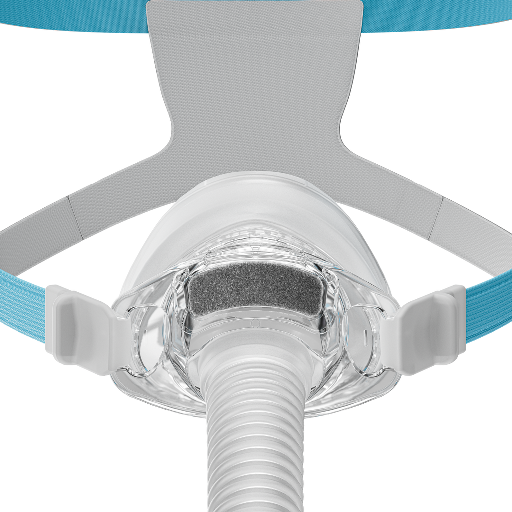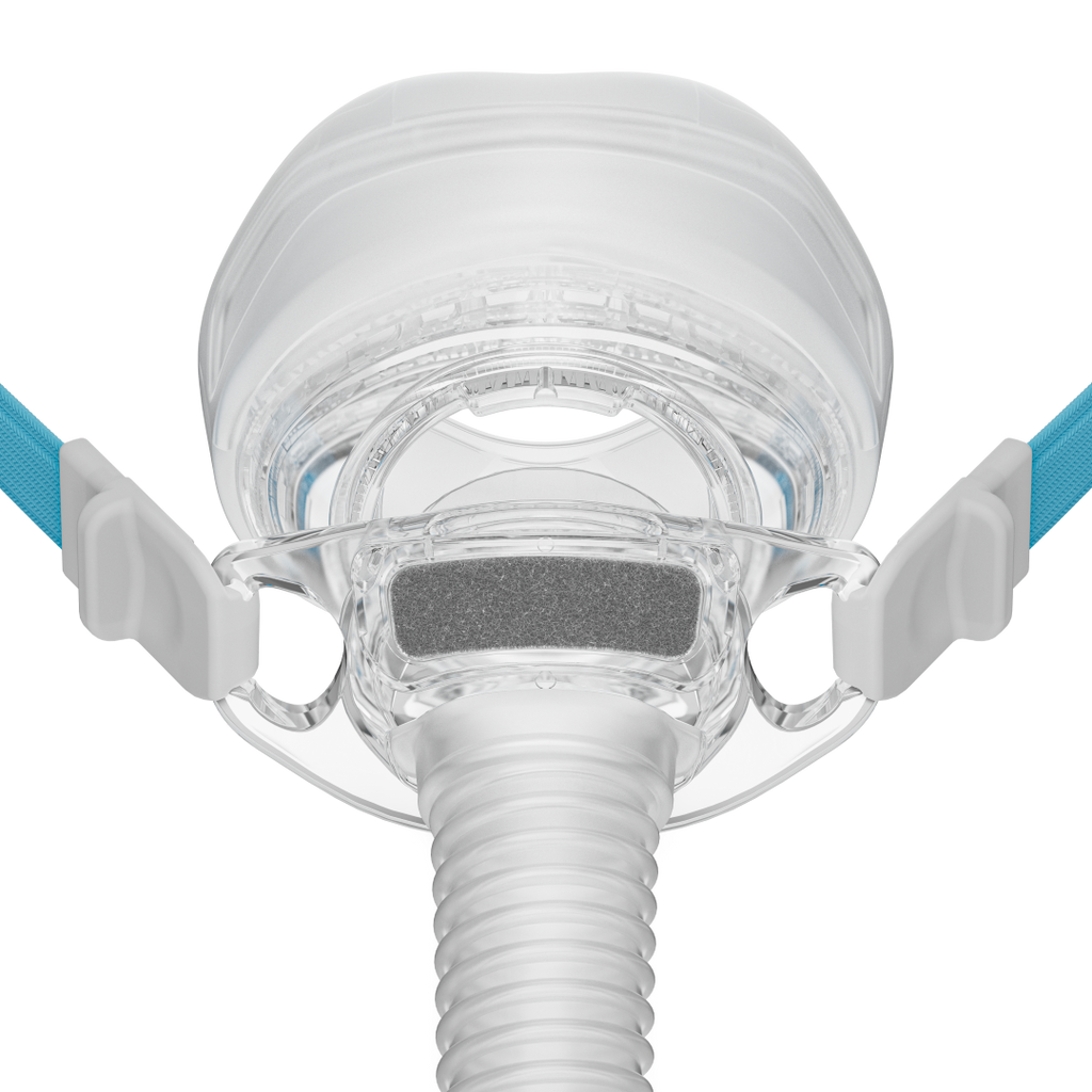 It begins with our easy-to-use SwingFit™ headgear. Simply place the cushion on your nose and swing the headgear around your head to secure with one click.