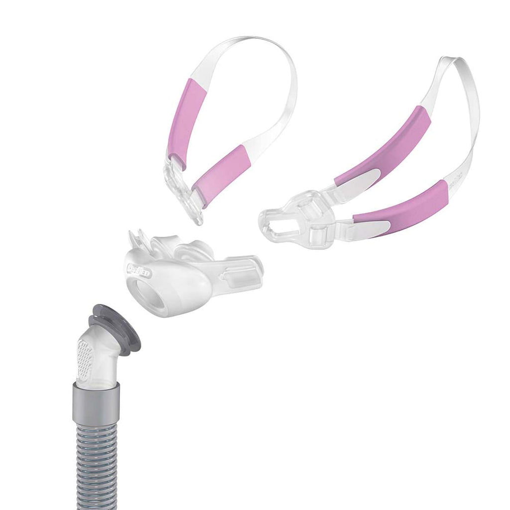 The replacement Swift FX Bella Loops are available in pink and are a great alternative to traditional headgear. The Bella Loop wraps around the ears and connects directly to the nasal pillows to provide the same secure fit you’d get from traditional headgear without a strap that wraps around your head.